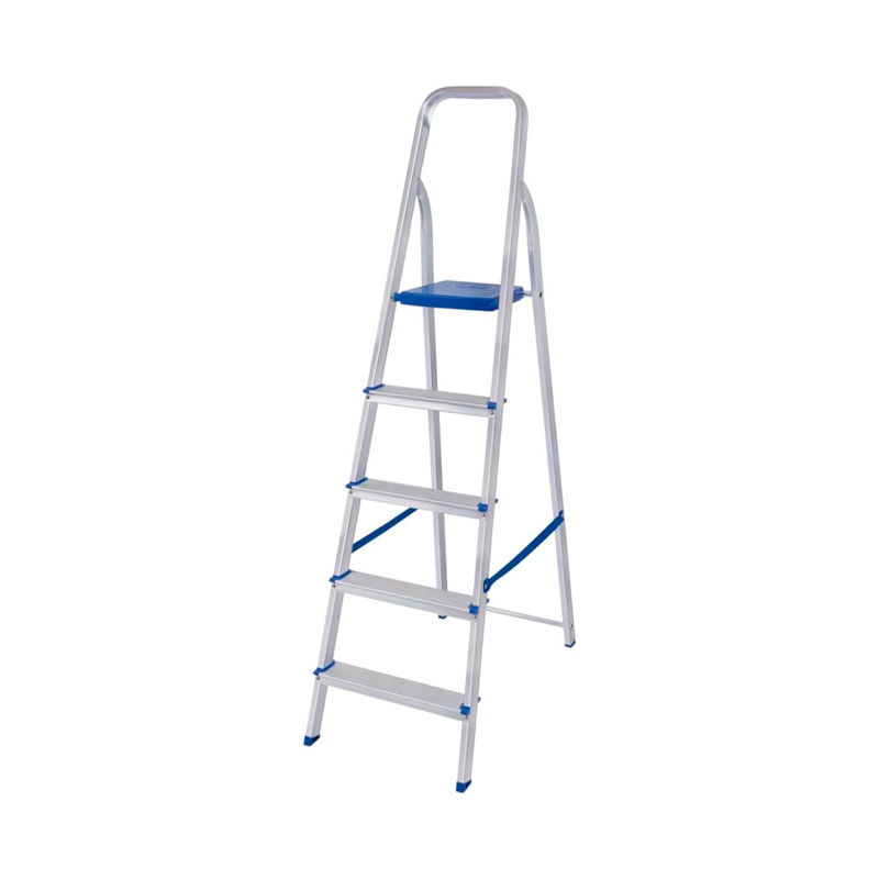 Escada Alumínio Doméstica 5 Degraus Reforçada Mor Escadas Cor Azul E Cinza
