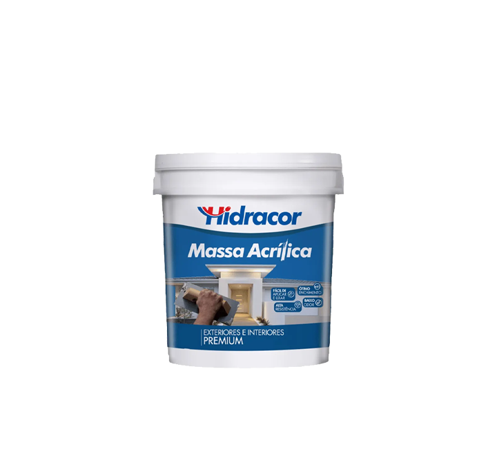 Massa Acrílica Hidracor nivela e corrige superfícies internas e externas, garantindo uma pintura de excelente acabamento e com muito mais durabilidade. Fácil de aplicar e de lixar, o produto apresenta grande resistência às ações do tempo e à alcalinidade, tem ótima consistência e grande poder de enchimento.