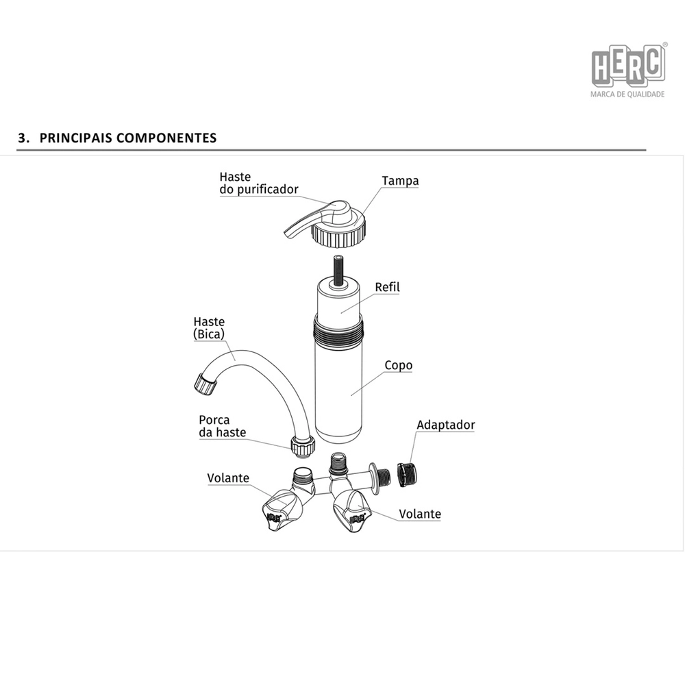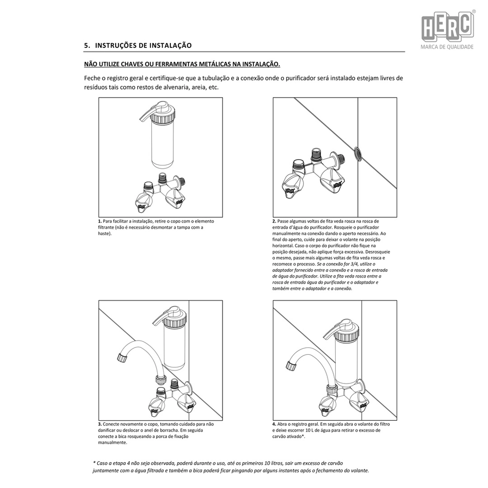 – Torneira com filtro Purificador Branco Herc bica móvel parede ou mesa