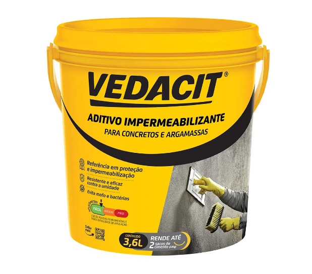 VEDACIT é um aditivo impermeabilizante para concretos e argamassas, que age por hidrofugação do sistema capilar e permite a respiração dos materiais, mantendo os ambientes salubres.