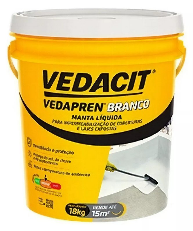 VEDAPREN é uma manta líquida, de base asfalto elastomérico e aplicação a frio sem emendas, pronta para uso e moldada no local. Cobre a estrutura com uma proteção impermeável e apresenta características de elasticidade, flexibilidade e aderência, tendo uma grande durabilidade.
